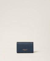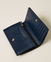 Medium wallet made from soft faux hammered leather with metal lettering logo. Fold-over closure with button, internal credit card slots and banknote compartment.