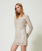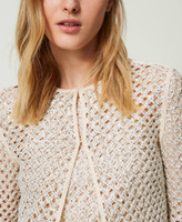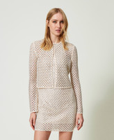 Short jacket made from loom mesh with weaved cordonnet threads, faceted sequin and bead embroidery, lining.