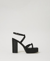 Actitude collection satin platform sandals with full rhinestone covering, ankle strap, tunit sole.