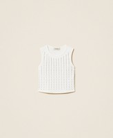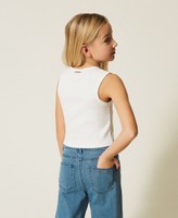 Girls' stretch cotton jersey ribbed top with studs at the front, round neck, fitted.