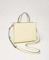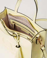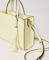 Soft faux calf nappa leather bag with embossed Oval T, double handle and removable, adjustable shoulder strap, zip closure and tassel charms.