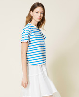 Cotton jersey t-shirt with poplin insert on the sleeve, round neck, thread embroidered Oval T logo.