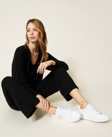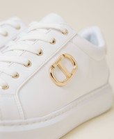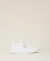 No-nonsense footwear, you can match with everything. Lace-up white trainers with metal Oval T logo on the side and rubber sole. Will add an up-to-date note to your work outfits.