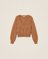 Viscose jumper with diamond pattern and embroidered cabochons at the front. V neck, long sleeves, ribbed trims, heart-shaped metal logo plate, straight fit.