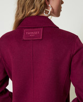 Coat made from doubled wool blend cloth, clean lines and flat seams on the inside. Lapels, tonal button fastening, long sleeves, logo label embroidered on the rear yoke, no lining, straight fit.