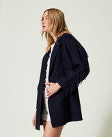 Doubled wool coat with fringes