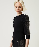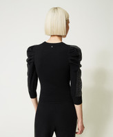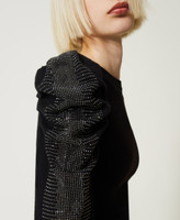 Actitude collection fitted jumper made from modal blend yarn, with gathered sleeves and micro stud appliqués.