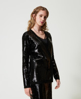 Full sequin double-breasted cardigan