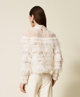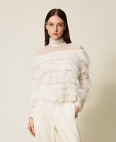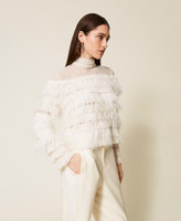 - 35% polyamide 35% acrylic 15% wool 15% alpaca. Material 3: 100% polyester. Material 4: 100% ostrich feathers