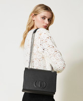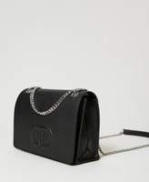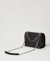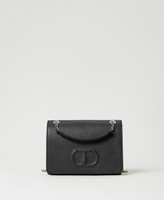 Leather shoulder bag with embossed Oval T logo, sliding chain with shoulder pad, flap and clip closure.