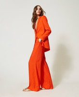 - 100% viscose. Belt: 100% viscose. Pocket lining: 68% acetate 32% polyester.