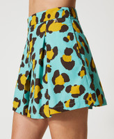 Actitude collection poplin shorts with animal print, flared fit, front pleats, side zip.