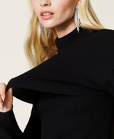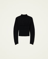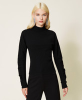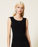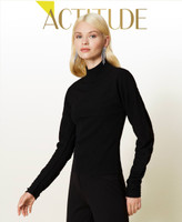 Twin-set with new proportions. Stretch viscose turtleneck cropped jumper with gathered shoulders and Actitude logo plate. Matching ribbed top with round neck, sleeveless.