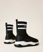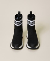 Sock boot trainers with contrasting logo on the leg and rubber sole.