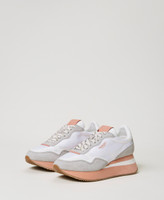 Wedge running trainers with coloured sole in the same tone as the side lettering, rubber sole.
