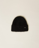 Alpaca blend plain knit beanie with sequin thread and wide turn-up.