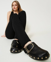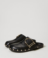 Leather mules with buckle