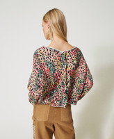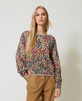 Dual use printed cotton jumper (can also be worn as cardigan), with boat neck, snap buttons.