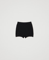 Seamless stretch viscose knit shorts with elasticated waist and ribbed hem, fitted.