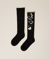 Ribbed socks with handmade embroidery of sequins and bezels, and Oval T plate.