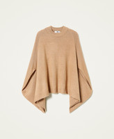 Soft and very warm, this cape jumper is one of the season's key pieces. Wide volume with crew neck and asymmetric, ribbed hem, openings for the arms, vertical line and small logo plate on the back. Show it off with wide trousers or long skirt, also in your travels.