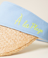 The trendiest beach accessory, our up-to-date visor features straw brim and cotton band with strap buckle, personalized on one side with neon yellow À la plage writing. Created to make your holiday outfits special.