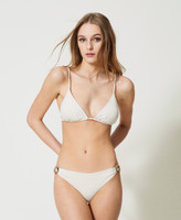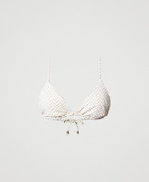 Jacquard triangle bikini top with lurex chevron pattern and removable padded cups.