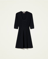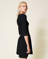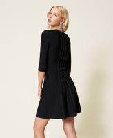 Short dress made of stretch viscose crêpe with metal half-sphere studs and three-quarter sleeves.