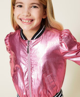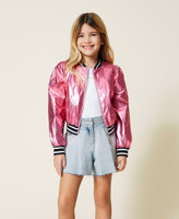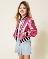 The perfect jacket for space girls. The laminated coated fabric bomber jacket features striped knit finishes, zip closure with logo puller, side pockets and no lining. The right outerwear for a bold look.