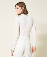 Modal turtleneck jumper with small buttons on the neck and shoulders, long sleeves.