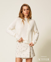 Actitude collection jumper with cable knit pattern at the front, turtleneck, logo plate on the back, straight fit.