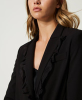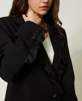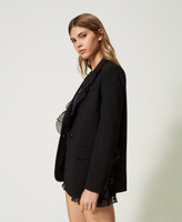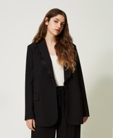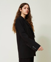 - 67% polyester 30% viscose 3% elastane. Material 2: 74% viscose 26% polyamide. Lining: 100% polyester.