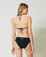 If you love minimalist styles, choose this bikini bottom made from doubled solid colour fabric with rhinestone mesh inserts on the sides and small logo plate on the back. The perfect complement to your favourite matching bikini top.
