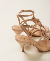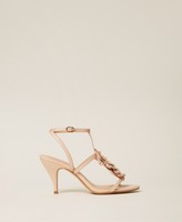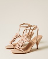Nude-effect leather sandals with flower detail, ankle strap, leather-wrapped heel and tunit sole.