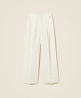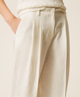 Actitude collection linen and viscose trousers. Double pleats at the front, zip and button fastening, slant pockets, palazzo fit.