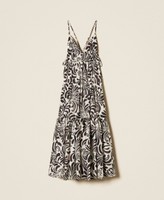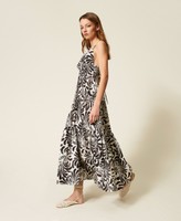 Long cotton poplin dress with botanical print exclusive to Twinset. It has thin tie shoulder straps with pearl-shaped ends and a strap on the back, double fabric triangle cups, elastic at the waist that defines the silhouette, flounces at the bottom, heart-shaped metal logo on the back, fit & flare line.