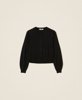 Lurex crew neck cable knit cardigan