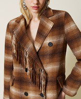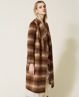 Chequered double wool cloth coat