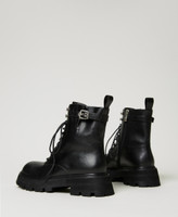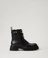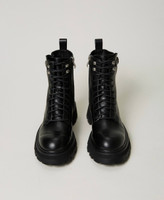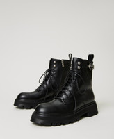 Actitude collection combat boots with central fastening, small side bellow with strap, inner zip, rubber sole.