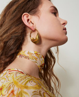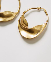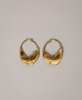 Half-moon hammered earrings with snap fastening and a galvanised antique-gold colour.