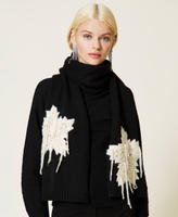 Actitude knitted scarf with handmade Cornely-effect star motif embroidery.