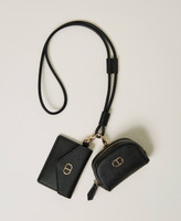 Saffiano print leather-like set with domed mini pouch with zip and envelope card holder with snap button.