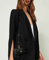 Use this pouch duo with Saffiano print leather-like strap as you like. The domed mini pouch features zip closure while the flat card holder has snap button closure. You can use them together or separate, around your neck or cross-body, as you like.