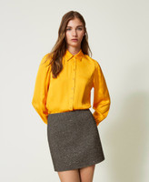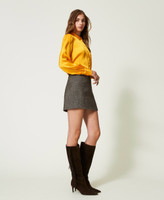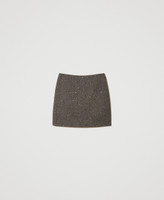 Wool blend miniskirt with two-tone chevron pattern and sequins, zip closure and inner lining.
