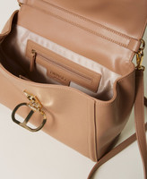Brera' top handle bag made from smooth faux calf leather with flap and galvanized brushed gold-tone Oval T fastener. Handle and cross-body strap, both removable with carabiners, lining.