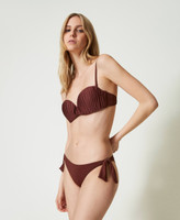 Bikini thong made from doubled fabric with adjustable side bows and Oval T logo on the back.