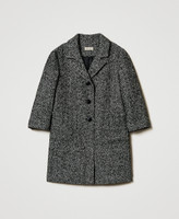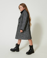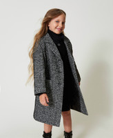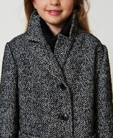 Girls’ coat made from wool blend cloth and lurex with chevron pattern and light padding. Lapels, single-breasted fastening with buttons, appliqué pockets, logo plate on the front, lining, straight fit.