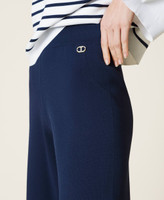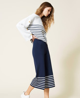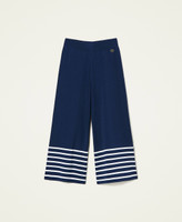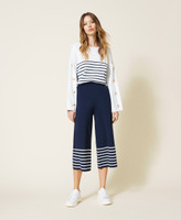 Cropped viscose crêpe trousers with placed stripes at the bottom, elasticated waist, full volume.