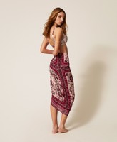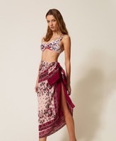 Embossed fabric sarong with multicolour collection print.