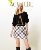 Contemporary argyle for the Actitude full sequin miniskirt with check pattern, side zip and elasticated ribbed waistband. Wear it with heels or combat boots, depending on the mood.